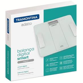 DIMENSÕES - Dimensões Produto (Compr. X Larg. X Alt.): 302x 302x 22 mm. Tipo de balança: Smart | Materiais da plataforma: Vidro | Capacidade máxima de peso: 180 kg | É pediátrica: Não | Com medidor de gordura corporal: Sim | Tipos de alimentação: Bateria | Comprimento: 30.2 cm | Largura: 30.2 cm | Altura: 2.2 cm | Com display digital: Sim | Com bluetooth: Sim | Com desligamento automático: Não | Com indicador de bateria fraca: Não | Linha: Adatto | EmbalagemComprimento-cm: 33 | EmbalagemLargura-cm: 33 | Cubagem: 0.005445 | Modelo: Adatto 61101230 | EmbalagemAltura-cm: 5 | Dias Entrega Fornecedor: 0 | Peso Líquido: 1.59 kg | Marca: Tramontina Ean: 7891116169193