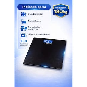 Com capacidade máxima de 180 kg, a balança é perfeita para toda a família. Sua tela digital proporciona uma leitura clara e fácil, enquanto o indicador de excesso de peso garante que você esteja sempre ciente de suas medidas. O desligamento automático contribui para a economia de bateria, tornando-a prática e eficiente.