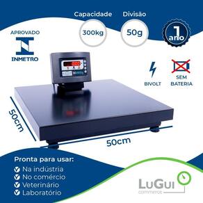 Balança Eletrônica Pesadora Plataforma W300 50x50 Cód. 41850 Homologadas pelo INMETRO 0052600.005637/2020-89 Portaria 101/2020 e aferidas pelo IPEM; Capacidade: 300 kg, divisões de 50g; Display LED com 6 dígitos de 14,2 mm de altura e 8,1 mm de largura; Estrutura em aço carbono; Pintura Poliéster a pó na cor preta; Plataforma: 500 x 500 mm em aço carbono; Fonte externa 90 a 240 VAC com chaveamento automático; 01 ano de ; Marca WELMY, fabricante WELMY, procedência nacional; Assistência técnica em todo território nacional. Peso bruto: 16,300 kg - Peso Liquido: 14,900 kg Altura cm : 21 Largura cm : 50 Comprimento cm : 88 Volume m : 0,0924 Marca: Não Informado