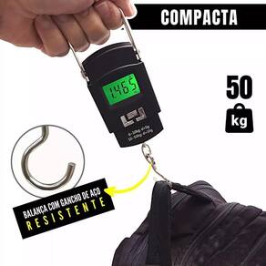 - balança digital portátil para o dia-a-dia com função tara, desligamento automático; - display de 4 dígitos com números grandes para melhor leitura; - botão: on/off; - unidades de medida: kg, lb, oz; - capacidade máxima de 50 quilos; - muito leve e prática; - possui gancho de alta qualidade, fabricado em aço, para pesagem; - possui modo de bloqueio lock e memorização do peso;