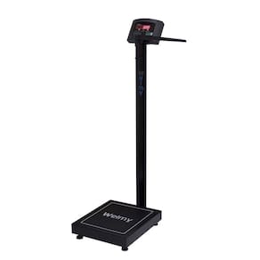 Balança Eletrônica Adulto W 200/50 A Preta C.Fiscal-ncm: 84231000 Código/balança: 63844 Capacidade máxima 200 kg, divisões de 50 g; Régua antropométrica com escala de 2,00 m em alumínio anodizado com divisão de 0,5 cm; Display LED com 6 dígitos de 14,2 mm de altura e 8,1 mm de largura; Plataforma: 340 x 390 mm; Estrutura em chapa de aço carbono com proteção de tinta epoxi; Padrão na cor preta; Tapete Adesivo em PVC; Pés reguláveis em borracha sintética; Fonte externa 90 a 240 VAC com chaveamento automático; Função TARA até capacidade máxima; Homologadas pelo INMETRO e aferidas pelo IPEM; 01 ano de ; Marca WELMY, fabricante WELMY, procedência nacional; Assistência técnica em todo território nacional. Opcional: Saída de dados RS 232. Peso bruto: 10,900 kg - Peso Liquido: 9,800 kg Altura cm : 125 Largura cm : 35 Comprimento cm : 51 Volume m : 0,2231 Ean: 7898949185475
