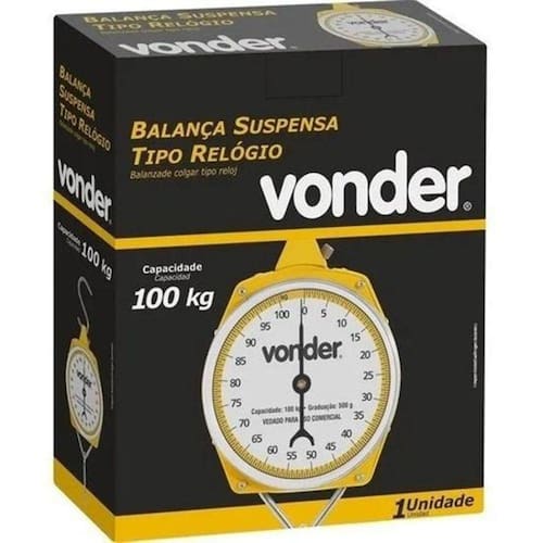 DESCRIÇÃO DO PRODUTOIndicada para pesagens em geral em chácaras, fazendas e sítios. Ideal para pesagens de ração, aves, suínos, ovinos, caprinos e produtos rurais.Possui graduação de 500 g vetada para uso comercial .Confeccionada em plástico resistente e metal.Acompanha gancho para prender o material ou alimento a ser pesado.Capacidade da balança tipo relógio: 100 kgMedidas aproximadas do produto- Comprimento: 25 cm- Altura: 9 cm- Largura: 21 cm- Peso: 1000 g