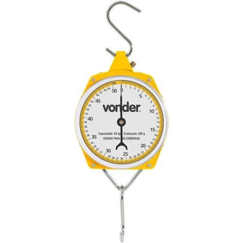 Indicada para pesagens em geral em chácaras, fazendas e sítios. Ideal para pesagens de ração, aves, suínos, ovinos, caprinos e produtos rurais. Possui graduação de 100 g vetada para uso comercial . Balança suspensa tipo relógio 50 kg vonder Confeccionada em plástico resistente e metal. Acompanha gancho para prender o material ou alimento a ser pesado. Altura: 0,054 cm Informações complementares: capacidade da balança tipo relógio: 50 kg Itens inclusos: 1 balança Largura: 10 cm Peso: 0.95599999999999996 Profundidade: 107 cm Recomendações de Uso, Manutenção e Limpeza: Indicada para pesagens em geral em chácaras, fazendas e sítios. Ideal para pesagens de ração, aves, suínos, ovinos, caprinos e produtos rurais. Possui graduação de 200 g vetada para uso comercial . Ean: 7893946487324