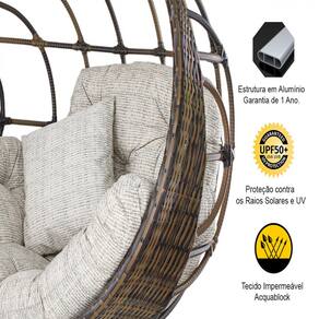 ESPECIFICAÇÕES TÉCNICAS: Balanço Suspenso Hungria: - Altura: 115 cm - Largura: 115 cm - Profundidade: 75 cm - Suporta até 200 kg - Acompanha 1 Almofada de assento, 1 almofada de encosto e 2 almofadas soltas - Acompanha 1 corrente e 2 mosquetões