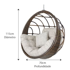 ESPECIFICAÇÕES TÉCNICAS: Balanço Suspenso Hungria: - Altura: 115 cm - Largura: 115 cm - Profundidade: 75 cm - Suporta até 200 kg - Acompanha 1 Almofada de assento, 1 almofada de encosto e 2 almofadas soltas - Acompanha 1 corrente e 2 mosquetões