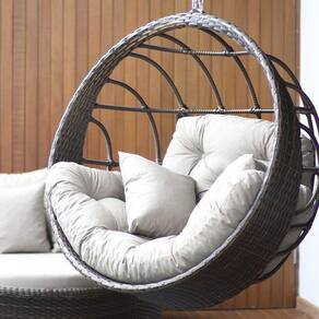 ESPECIFICACOES TECNICAS: Balanco Suspenso Hungria: - Diametro: 115 cm - Profundidade: 75cm - Suporta ate 200 kg - Acompanha 1 Almofada de assento, 1 almofada de encosto e 2 almofadas soltas - Acompanha 1 corrente e 2 mosquetoes