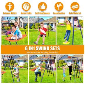 Conjunto de balanço para área externa com estrutura em aço liga reforçada, acabamento em pintura eletrostática para maior resistência à corrosão. Este modelo 6 em 1 oferece três balanços ajustáveis em altura: balanço plataforma com alça de segurança, balanço de cinto em EVA resistente à água e balanço tipo "tree swing". Completa a estrutura um escada de escalada reforçada, rede de escalada em fibra composta e cesta de basquete para atividades extras. A estrutura com design em treliça formato A-frame possui dupla reforço nos pontos de maior tensão, evitando deformações mesmo com uso intenso. Medidas gerais aproximadas de 320 cm (profundidade) x 190 cm (largura) x 185 cm (altura), garantindo espaço adequado entre os balanços para segurança das crianças. Capacidade máxima suportada até 250 kg (550 libras), compatível com até três usuários simultâneos. Inclui seis estacas para fixação no solo otimizando a estabilidade. Produto recomendado para montagem em jardins, quintais, áreas ao ar livre como parques e varandas. Exige montagem.