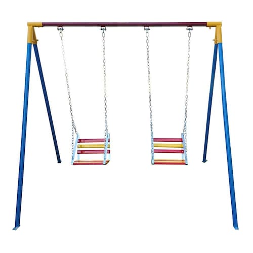 Balanço Infantil em Aço Galvanizado de 2 Lugares com Cadeiras Nosso Balanço Infantil é meticulosamente fabricado com tubos de aço galvanizado com pintura epóxi, oferecendo ótima resistência à ação do tempo, seja sol ou chuva.A pintura epóxi eletrostática supera as tintas comuns em durabilidade, mantendo a aparência vibrante e protegida contra desgastes. As cadeiras feitas de aço galvanizado e madeira de eucalipto, são finalizados com pintura sintética automotiva colorida, adicionando um toque de cor e alegria ao parquinho. As correntes que acompanham este balanço infantil, são feitos em aço galvanizado e zincado, os elos são pequenos para evitar acidentes. Características Técnicas e Informações de Uso:Material da Estrutura Metálica: Tubo de aço galvanizado com cano de 2,5" para estrutura robusta.Pintura da Estrutura Metálica: Epóxi eletrostática para maior resistência ao desgaste.Cadeiras: Feitas de aço galvanizado e madeira de eucalipto com pintura sintética automotiva.Material das Correntes: Elos pequenos em aço galvanizado e zincado.Medida da Corrente: 1,5m com um dos lados terminando em "V"Instalação: A estrutura da balança deve ser chumbada ao solo, para maior estabilidade e segurança.Idade Recomendada: Até 10 anos, garantindo diversão para diversas faixas etárias.Peso Máximo: 60 kg em cada assento, assegurando segurança durante o uso. Dimensões e Peso:Balanço: 2,05 x 1,60 e 1,93m de altura.Cadeira: 0,42 x 0,32m.Peso Total: 35Kg