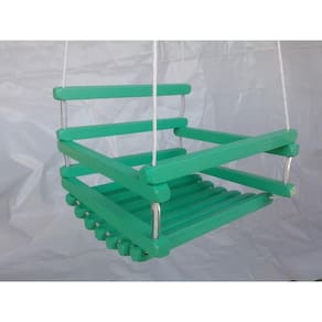 Balanço de madeira com separadores de silicone. Cor: Verde Corda de nailon . OBS: Será enviado balanço e 2 cordas com 5 metros cada total 10 metros para cada balanço .