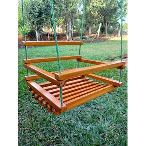 Balanço de madeira com separadores de silicone. Pintura em verniz mogno. Corda de nailon . OBS: Será enviado balanço e 2 cordas com 5 metros cada total 10 metros para cada balanço .