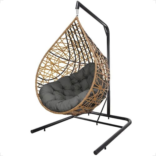 Balanço Suspenso Ninho Gota Com Suporte Mola E Mosquetão Almofada Impermeável Gourmet Área Externa