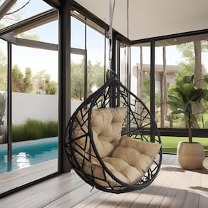 BALANÇO PARATI Transforme seu ambiente com conforto e durabilidade em um único produto! O Balanço Parati é a escolha perfeita para quem busca sofisticação, conforto e elegância.É uma peça funcional, ideal para compor ambientes internos e externos com sofisticação e aconchego.Com estrutura em aço resistente, trançado artesanalmente em fibra sintética, ele proporciona um visual elegante e atemporal, ideal para compor qualquer ambiente com charme e requinte. Seja em varandas, jardins ou áreas internas, este balanço é versátil e transforma o espaço em um verdadeiro refúgio de bem-estar. Além do design moderno, acompanha uma almofada macia que eleva ainda mais a sensação de conforto. Características do Produto: