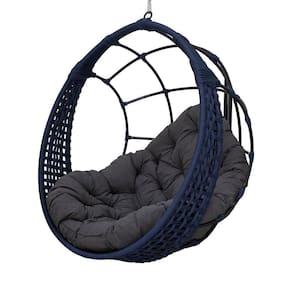 Balanço Ninho Suspenso Corda Náutica Azul Almofada Impermeável Cinza Com Mola E Mosquetão