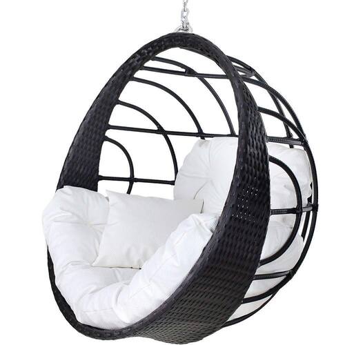 Balanço Ninho Suspenso Hungria Em Alumínio E Fibra Sintética - Teto, Jardim, área Preto E Courino Nautico Branco