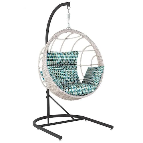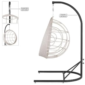 Balanço Suspenso Ninho Em Aluminie Fibra Marmore E Suporte U Preto, Tecido Impermeável - Z36