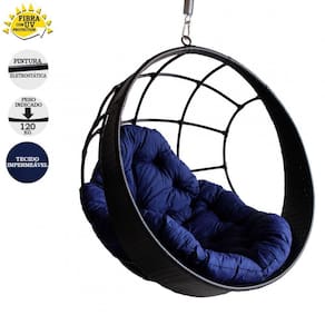 Balanço Suspenso Ninho Em Fibra Sintética Com Almofada E Mola E Mosquetão Acesse Móveis Preto/azul