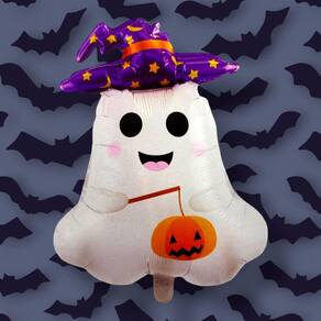 Modelo: Fantasminha - 1x Balão com Formato de Fantasma 47,5cm x 66,5cm - Material: Polietileno e Folha Metalizada