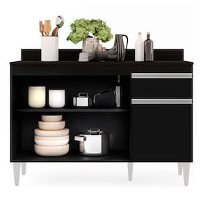 Cozinhar se tornará um hábito ainda mais prático e divertido com este lindo Balcão Vick 120 cm no tom Preto. É uma ótima opção para criar um espaço elegante e requintado. Essa cor Preto agregará um aspecto leve, charmoso e moderno à decoração. Uma dica bem legal para que a decoração da cozinha não caia no tédio e fique com um ar mais alegre, é optar por itens decorativos super coloridos, mantendo sempre a harmonia com o restante da mobília. Tudo varia de acordo com a personalidade e estilo do usuário(a). Esse balcão acompanha tampo, possui 3 portas e 1 gaveta de puxadores em perfil alumínio e ainda conta com 1 prateleira interna oferecendo maior organização. Além disso, pés em PVC e estrutura em MDP com acabamento em pintura BP. Escolha o seu Balcão Vick, e deixe sua cozinha um sucesso!