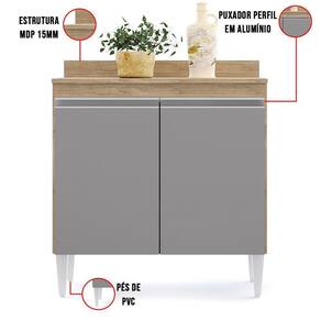 Quer dar uma modernizada na sua cozinha? Temos uma opção útil que irá ajudar você a transformar esse cantinho tão especial. Olha que lindeza esse Balcão Sara 80,5 cm no tom Castanho e Cinza, sem dúvidas ele vai conquistar seu coração! Se você ama uma cozinha clara, esse móvel vai deixar seu ambiente ainda mais incrível! Com acabamento e a durabilidade que você busca, a estrutura é feita em mdp com acabamento em pintura bp, os pés são em pvc, acompanha tampo, possui 2 portas de puxadores em perfil alumínio e ainda conta com 1 prateleira interna oferecendo maior organização. Um móvel que além de deixar tudo mais bonito, organizado, ele ainda possibilita que os utensílios culinários ou produtos mais utilizados, estejam sempre ao alcance das mãos. Imperdível para sua casa!! Garanta já o seu.