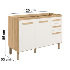Balcão 03 Portas 120 cm sem Tampo 16988 acabamento refinado e visual sofisticado. Estrutura em MDP, com caixa de 12 mm e frente em 15 mm, e excelente acabamento em Fosco/Brilho. O Balcão é composto por 03 portas, com dobradiças metálicas para garantir a suavidade no abrir e fechar, 02 gavetas com corrediças telescópicas, 01 prateleira e puxadores em MDF. Acompanha 05 pés com regulagem de altura de 15,5 cm mais 1,5 de regulagem. Não Acompanha Tampo. Este móvel chegará em sua casa separado em 01 volume.