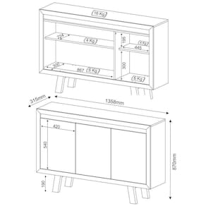 - Dimensões do Produto: Largura 135,8Cm x Altura 87Cm x Profundidade 31,5Cm