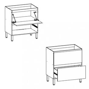 O Balcão 800 1BASC 1GAV ART é um móvel de alta qualidade, projetado para oferecer durabilidade, resistência e funcionalidade. Destaca-se pela precisão das dobradiças com amortecedor e pelas corrediças telescópicas, que proporcionam abertura e fechamento suaves das gavetas. Os puxadores usinados a 45° adicionam um toque minimalista, enquanto as portas basculantes com pistão a gás garantem um visual moderno e clean. Sua estrutura é feita em MDP de 12 e 15 mm, com acabamento em pintura UV e pés reguláveis, tornando-o uma escolha funcional e elegante para a cozinha. Não acompanha tampo.