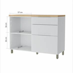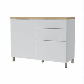 Balcao 1 Porta 3 Gavetas Nesher Marquesa 120cm 100 Mdf Branca Nature - Branco