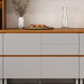 O Balcão 1 Porta 4 Gavetas 120cm Lumina é um móvel com um design moderno e com alto padrão de acabamento e beleza. Com sua caixaria e portas fabricadas em MDF e acabamento em pintura UV, torna este balcão capaz de resistir ao uso diário, fornecendo durabilidade e um acabamento atraente ao móvel. Já as corrediças telescópicas de 3 estágios quem garantem um fechamento suave e silencioso, oferecendo maior resistência e praticidade. Tampo com 25cm, resistente a altas temperaturas, até 120oC.