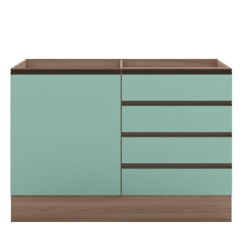 Informações Complementares: Balcão para pia deslocada direita/esquerda, não acompanha tampo/pia, porta de bater, dobradiças resistentes de 35mm com a função slow motion, prateleira, porta talher, gavetas com corrediças telescópicas, pés PVC reguláveis, rodapés removíveis com presil