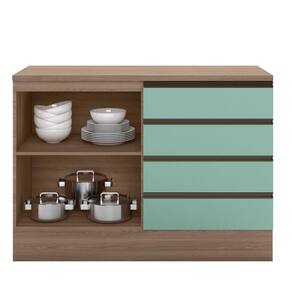 Informações Complementares: Balcão com tampo, flex para pia deslocada direita/esquerda, porta de bater, dobradiças resistentes de 35mm com a função slow motion, prateleira, porta talher, gavetas com corrediças telescópicas, pés PVC reguláveis, rodapés removíveis com presilhas model