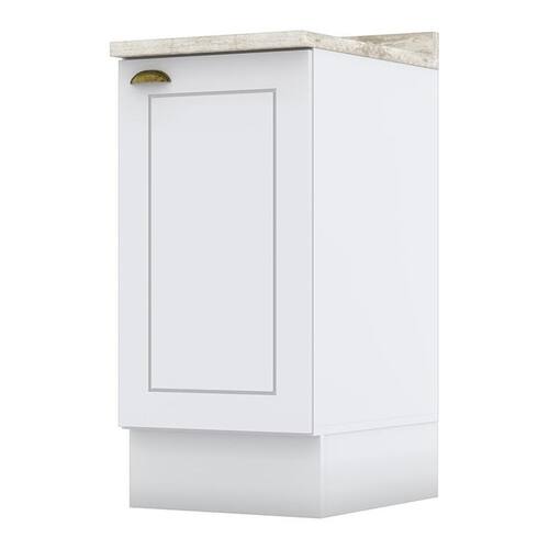 ESPECIFICAÇÕES: • Estrutura 100% MDF • Pintura UV • 1 Porta • Dobradiças de 35mm com amortecimento • Puxadores em zamac ouro velho • Usinagem em baixo relevo • Altura do balcão sem o pé: 67,5 • Acompanha tampo