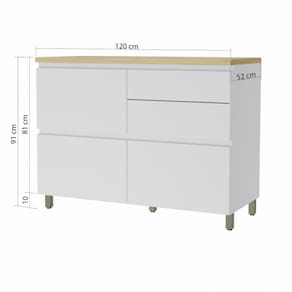 A linha de cozinha Nesher Rainha 100% MDF e com certificação FSC(R), tem design contemporâneo, robusto e é muito pratica.Inspirada em cozinhas planejadas, está disponível em módulos, permitindo composições variadas, projetos exclusivos, conforme o espaço e o gosto do consumidor. Os armários aéreos foram projetados com porta canelada, tendencia de Milão - Itália, que propõe sofisticação, aconchego, grande beleza e harmonia ao conjunto. Outro grande diferencial são os balcões com maior altura util do mercado, proporcionando maior espaço para guarda de utensilios e mantimentos e ainda com pés menores 10cm (mais regulagem de 2,5cm). O pé de 10 cm, deixa o conjunto com maior robustez, proporcionalidade e beleza. Disponível em duas cores: Portas verde e corpo amadeirado Nature e porta branca, corpo branco e tampo dos balcões amadeirado Nature. Projetada para proporcionar praticidade e funcionalidade no uso diário, produzida com insumos do mais alto nível e ferragens tecnológicas de última geração.Diferenciais únicos:- Dobradiças com freio anti-impacto slow motion, porta de 60 cm com 3 dobradiças, conforto e garantia de durabilidade.- Modernos puxadores perfil tipo gola/cava na cor do corpo, tendencia, sofisticação, durabilidade e beleza.- Corrediça Telescópica Abertura Integral: Robusta e com três estágios, esta corrediça é ideal para o uso diário, facilitando o acesso aos utensílios.- Ergonômicos gavetões com laterais e traseiros altos para armazenagem com segurança de utensílios e mantimentos.- Gaveta porta codimentos e Gaveta com organizador de talheres, conforto e praticidade no uso diario. Conheça toda a modulação e faça seu projeto!Dimensões:Altura: 91,0 cmLargura: 120,0 cmProfundidade: 52,0 cmPeso: 61,3 kgGarantia legal: 3 Meses