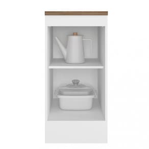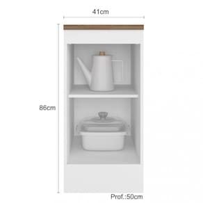 Características: 1 Porta de bater Tampo de 27mm de espessura Dobradiças de 35mm Prateleira interna Puxador retrô em polímero metalizado Pés reguláveis PVC de 14,5 cm Rodapés removíveis com presilhas modelo click. Material MDP