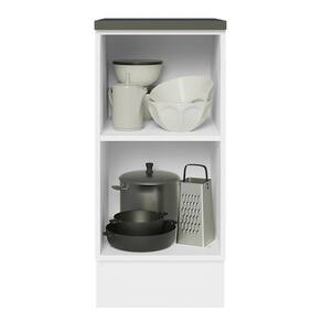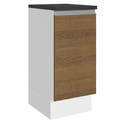 Possui uma porta convencional e divisão interna com uma prateleira e bom espaço disponível. O móvel contempla o tampo do balcão em pintura Nero Marquina e os pés são em PVC, com rodapé removível em MDF de fácil encaixe.