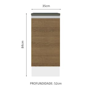 O Balcão de 35 cm da linha Acordes da Madesa é produzido em 100% MDF e composto por materiais de alta qualidade, como puxadores em alumínio e dobradiças metálicas.