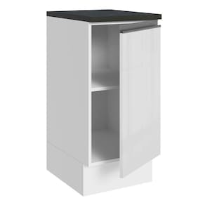 Possui uma porta convencional e divisão interna com uma prateleira e bom espaço disponível. O móvel contempla o tampo do balcão em pintura Nero Marquina e os pés são em PVC, com rodapé removível em MDF de fácil encaixe.