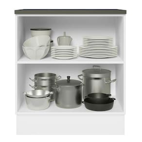 Possui duas portas convencionais e uma prateleira interna, com ótimo espaço para armazenar utensílios, louça, panelas e mantimentos de forma organizada.