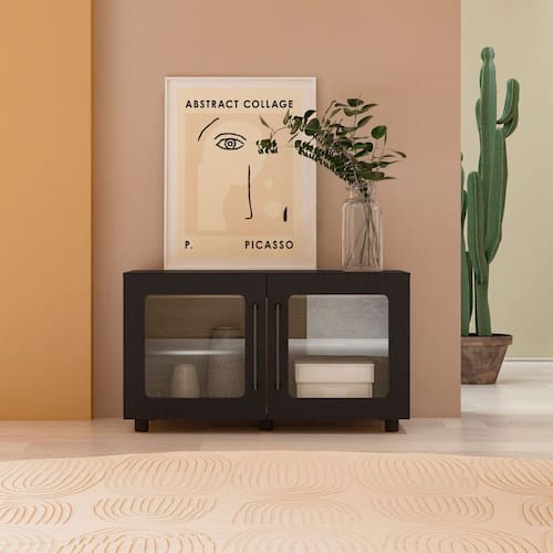Adicione elegância e organização à sua casa. Espaço Charmoso e Funcional: Para organizar utensílios ou exibir decorações, oferecendo praticidade. Portas com vidro temperado 0, 3cm e puxador de aluminio: Toque refinado que eleva o visual do móvel e do ambiente. Design que Encanta os Olhos: Combinação perfeita entre beleza estética e funcionalidade. Versatilidade de Uso: Ideal para salas de jantar, cozinhas ou ambientes diversos. Qualidade Duradoura: Materiais resistentes para garantir a durabilidade e estabilidade do móvel. Detalhes que Cativam: Acabamento sofisticado para transformar seu espaço com elegância. É a adição que sua casa precisa para harmonizar beleza e organização. Aproveite para renovar seu espaço com estilo e funcionalidade! Acabamento: Pintura UV Acabamento da Porta: Pintura UV Ambiente Principal: Sala de Estar codigo_ean: 7900288236708 Complexidade da Montagem: Média: pode ser montado por mais de uma pessoa e/ou necessite de maior conhecimento para montagem Cor: Preto / Riviera Cor do Produto: Preto / Riviera Escala de Brilho: Fosco Escala de Brilho da Porta: Fosco Espessura do Vidro: 5 mm Itens Inclusos: 1 Balcão, Kit Ferragem e Manual de Montagem Linha ou Coleção: Mia Manual de Montagem e Instalação: https://cdn2.madeiramadeira.com.br/atributo/artely/3210154-115-17581074017528.pdf Marca: Yescasa Material da Porta: MDF/MDP Material dos Pés: Plástico Material Principal: MDF/MDP Necessita Montagem: Sim Peso: 14,8 kg Possui Adega: Não Possui Bandeja: Não Possui Possui Espelho: Não Possui Gavetas: Não Possui Pés: 05 Possui Portas: Sim Possui Prateleiras: Não Possui Rodízio: Não Possui Vidro: Sim Recomendações de Uso, Manutenção e Limpeza: Não expor o produto ao sol, altas temperaturas e umidade. Não arrastar objetos sobre a superficie do móvel (objetos decorativos) e manter em local sco e arejado. Para a limpeza, ultilizar um pamo seco e macio. Não é necesário o uso de materias abrasivos ou álcool. Sapatas Niveladoras: Não Sistema de Montagem: Cavilha Minifix e Parafusos Suporta Até (kg): 5 kg Tipo de Dobradiça/Corrediça da Porta: Metálica Tipo de Porta: Abrir Tipo de Puxador da Porta: Externo