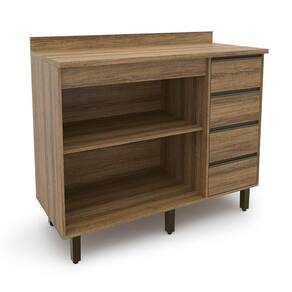 Características: - Balcão adaptável para PIA -não acompanha o produto- - Estrutura em MDP 12 e 15 mm - Tampo em MDP de 25 mm - Puxador poliestileno na cor bronze - Corrediças telescópicas - Dobradiças Slow 35 mm - Cantoneira estrutural - 06 pés de plástico reguláveis com 14 cm na cor bronze - Pintura: Fosco - Suporte de peso do tampo: 10 kg distribuídos - Suporte de peso das prateleiras e gavetas 5 kg distribuídos - Garantia de 12 meses