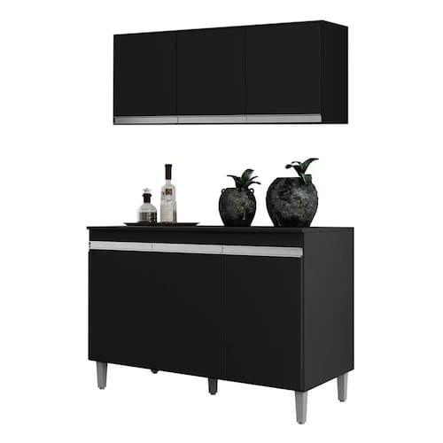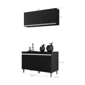 Balcão 120mt Manu e Armário Aéreo Andréia com Puxadores Embutidos - Preto