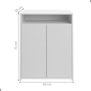Contém uma prateleira interna e um nicho para organizar seus utensílios, livros e caixas