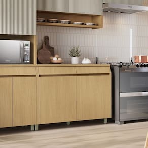 Se o que você procura é dar um toque moderno e deixar sua cozinha ser a atração principal da sua casa, o balcão sem tampo é sua escolha certa! Ele foi feito sob medida para você instalar sua pia e ainda garantir espaço extra para armazenar tudo o que precisa. As gavetas angulares, com corrediças telescópicas de três estágios e abertura total, são um show à parte – super práticas para guardar talheres, panos de prato e qualquer outro item essencial da cozinha. Esse balcão une praticidade, estilo e a funcionalidade que você tanto queria. Suporta Granito: Não Acabamento da Prateleira: Impressão Escala de Brilho da Prateleira: Semi-Brilho Acabamento da Gaveta: Impressão Escala de Brilho da Gaveta: Semi-Brilho Acabamento da Porta: Impressão Escala de Brilho da Porta: Semi-Brilho Produto Montado: Sim Acabamento: Impressão Acompanha Tampo: Não Altura dos Pés: 10 cm Altura Máxima dos Pés: 10.0000 Ambiente Principal: Cozinha Balcão Acompanha Pia: Não Balcão Suporta Pia: Sim Cesto para Frutas: Não codigo_ean: 7909903965740 Complexidade da Montagem: Média: pode ser montado por mais de uma pessoa e/ou necessite de maior conhecimento para montagem Cor: Carvalho/Greige Cor do Produto: Carvalho/Greige Escala de Brilho: Semi-Brilho Gaveta com Chave: Não Itens Inclusos: 1 Balcão, Kit Ferragens e Manual de Montagem Manual de Montagem e Instalação: https://product-hub-prd.madeiramadeira.com.br/952321/documents/8291bbbf-1cc6-49a7-8d71-3effbef8ca6847091727206619952321111990.pdf Marca: Nesher Móveis Material da Corrediça: Metálica Material da Dobradiça/Corrediça da Porta: Metálica Material da Gaveta: MDF Material da Porta: MDF Material da Prateleira: MDF Material dos Pés: Plástico Necessita Montagem: Sim O Balcão Acompanha Pia: Não Origem do Produto: Nacional Pés Reguláveis: Sim Peso: 4,35 kg Peso Máximo por Gaveta: 5 kg Peso Máximo por Prateleira: 10 kg Possui Pés: 05 Possui Portas: Sim Possui recorte para Cooktop: Não Recomendações de Uso, Manutenção e Limpeza: Utilizar pano macio levemente umedecido e na sequencia pano macio seco. Sapatas Niveladoras: Sim Sistema de Montagem: Parafusos. Suporta Até (kg): 30 kg Tipo de Corrediça da Gaveta: Telescópica Tipo de Dobradiça/Corrediça da Porta: 35 mm Tipo de Porta: Bater Tipo de Puxador da Gaveta: Embutido Tipo de Puxador da Porta: Embutido Marca: Não Informado