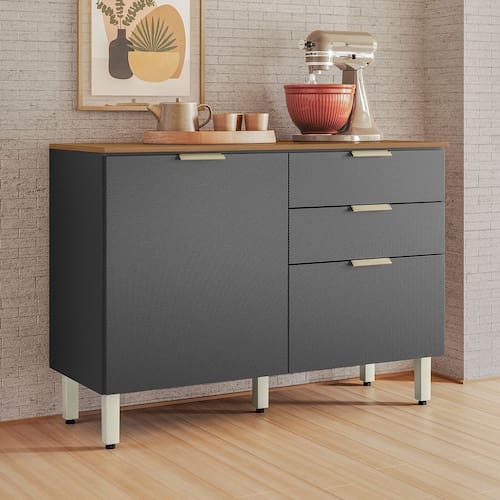 Caracter?sticas: 2 Gavetas 2 Portas 1 Prateleira Acabamento em pintura UV Acompanha tampo Corredi?as met?licas Dobradi?as met?licas Estrutura em MDP P?s com regulagem de altura Puxadores em pl?stico ABS