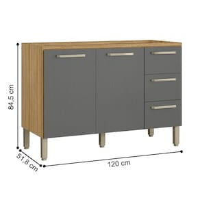 Balcão com 2 portas basculantes e 3 gavetas, ideal para complementar a cozinha.