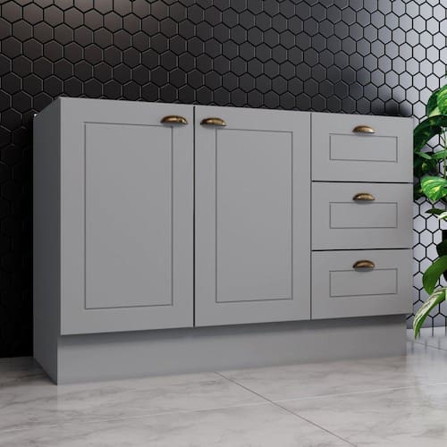 O Balcão 2 Portas 3 Gavetas Internacional possui detalhes usinados em baixo relevo nas portas e gavetas, puxadores nos balcões em formato de concha na cor ouro velho, possui dobradiças de 35mm com amortecimento, gavetas com corrediças telescópicas proporcionando maior abertura. Projetado para proporcionar praticidade e funcionalidade ao uso. Este produto foi desenvolvido para atender os mais criteriosos usuários aliando funcionalidade com elegância. Um novo conceito inspirado nas clássicas cozinhas estilo americano, seu design contemporâneo embeleza qualquer ambiente. Suporta Granito: Sim Acabamento da Prateleira: Pintura Texturizada UV Escala de Brilho da Prateleira: Fosco Acabamento da Gaveta: Pintura Texturizada UV Escala de Brilho da Gaveta: Fosco Material do Puxador da Gaveta: Metal Acabamento da Porta: Pintura Texturizada UV Escala de Brilho da Porta: Fosco Material do Puxador da Porta: Metal Produto Montado: Sim Acabamento: Pintura Texturizada UV Acabamento dos Pés: Pintura Acompanha Tampo: Não Altura dos Pés: 14,5 cm Ambiente Principal: Cozinha Balcão Acompanha Pia: Não Cesto para Frutas: Não codigo_ean: 7909903362099 Complexidade da Montagem: Alta: deve ser montado por um montador especializado Cor: Cinza Cor do Produto: Cinza Cor Interna: Trama Escala de Brilho: Fosco Gaveta com Chave: Não Informações Complementares: As portas possuem fechamento suave, acompanha um divisor de talheres Itens Inclusos: 1 Balcão, Kit Ferragens e Manual de Montagem. Linha ou Coleção: Emily Manual de Montagem e Instalação: https://product-hub-prd.madeiramadeira.com.br/860653/documents/ccf637a5-a502-4bf5-b06a-7a9149e7c126a03gaveta02portasinternacional.pdf Material da Dobradiça/Corrediça da Porta: Metálica Material da Gaveta: MDF Material da Porta: MDF Material da Prateleira: MDF Material dos Pés: MDF Montagem Flex: As gavetas podem ser montadas tando do lado direito quanto do esquerdo, Também pode ser montado em outros 2 formatos, tanto suspenso, quanto com rodapés (Peças necessárias para essas 2 opções inclusos na caixa). Além disso, pode ser montando com Kit Pés, Necessita Montagem: Sim O Balcão Acompanha Pia: Não Origem do Produto: Nacional Pés Reguláveis: Não Peso: 40 kg Peso Máximo por Gaveta: 3 kg Peso Máximo por Prateleira: 8 kg Possui Pés: Rodapé Possui Portas: Sim Possui recorte para Cooktop: Não Recomendações de Uso, Manutenção e Limpeza: Para limpeza de seu móvel, use uma flanela seca ou umedecida. Não utilize produtos químicos que possam danificar o produto. Sapatas Niveladoras: Não Sistema de Montagem: Parafusos e Cavilhas Suporta Até (kg): 25 kg Tipo de Corrediça da Gaveta: Telescópica Tipo de Dobradiça/Corrediça da Porta: Soft close Tipo de Porta: Bater Tipo de Puxador da Gaveta: Externo Tipo de Puxador da Porta: Externo