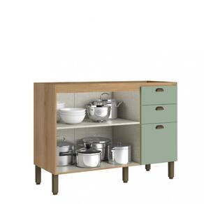 O BalcãoTHB Finesse combina funcionalidade e inteligência, oferecendo um balcão com amplo espaço para armazenar seus objetos e alimentos. As portas possuem um sistema de fechamento suave, evitando batidas indesejadas. As gavetas, equipadas com trilhos telescópicos, proporcionam uma abertura ampla e suave. O balcão conta com prateleiras removíveis, puxadores tipo concha e um sistema de montagem com parafusos e cavilhas. Estrutura em MDP de 15mm, enquanto os fundos do módulo e das gavetas são feitos de MDF de 3mm.