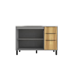O espaço interno do balcão Berlim vem com prateleiras, divisórias e três gaveta, sendo ótimo para a organização dos utensílios e mantimentos. Fabricados em material resistente, corrediças telescópicas, dobradiças metálicas, com puxadores cromados em ABS e pés em plástico. Suporta Granito: Não Acabamento da Prateleira: Pintura UV Escala de Brilho da Prateleira: Semi-Fosco Acabamento da Gaveta: Pintura UV Escala de Brilho da Gaveta: Fosco Acabamento da Porta: Pintura UV Escala de Brilho da Porta: Semi-Fosco Acabamento: Pintura UV Acompanha Tampo: Não Altura dos Pés: 15 cm Ambiente Principal: Cozinha Balcão Acompanha Pia: Não Complexidade da Montagem: Média: pode ser montado por mais de uma pessoa e/ou necessite de maior conhecimento para montagem Cor: Cinza/Louro Freijó Cor do Produto: Cinza/Louro Freijó Cor Flex: Não Cor Interna: Cinza Escala de Brilho: Fosco Gaveta com Chave: Não Itens Inclusos: 1 Balcão, Manual de Montagem, Kit Ferragem Manual de Montagem e Instalação: https://cdn2.madeiramadeira.com.br/atributo/caemmun-moveis/1300630-balcAo-2-portas-e-3-gavetas-leroy-ed-b.pdf Material da Dobradiça/Corrediça da Porta: Metálica Material da Gaveta: MDP Material da Porta: MDP Material da Prateleira: MDP Material dos Pés: ABS Montagem Flex: Não Necessita Montagem: Sim Origem do Produto: Nacional Pés Reguláveis: Não Peso: 39,3 kg Peso Máximo por Gaveta: 5 kg Peso Máximo por Prateleira: 10 kg Possui Pés: 06 Possui Portas: 02 Possui recorte para Cooktop: Não Recomendações de Uso, Manutenção e Limpeza: Limpar com pano macio levemente umedecido e em seguida pano macio seco. Não utilizar produtos abrasivos (lixas, esponjas) e/ou produtos a base de solventes (thinner, aguarrás). Sapatas Niveladoras: Não Sistema de Montagem: Minifix, Cavilhas e Parafusos Suporta Até (kg): 40 kg Tipo de Corrediça da Gaveta: Telescópica Tipo de Dobradiça/Corrediça da Porta: Simples Tipo de Porta: Bater Tipo de Puxador da Gaveta: Embutido Tipo de Puxador da Porta: Embutido