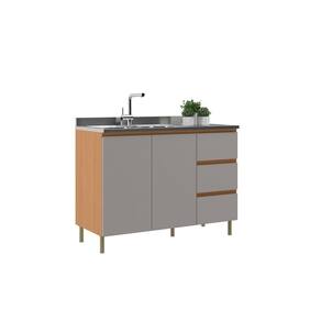 Balcão 2 Portas 3 Gavetas sem Pia Em MDF Florença Móveis Sul O balcão de pia de 120 cm é feito totalmente em MDF, com acabamento em pintura UV. Ele vem equipado com trilhos telescópicos e pés que permitem ajuste de altura.
