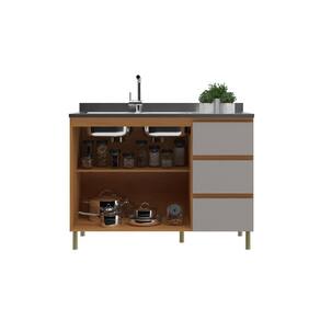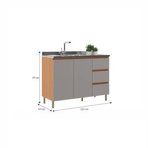 Características: Estrutura MDF 2 Portas 3 Gavetas Corrediças telescópicos Pés com regulagem de altura Acabamento em pintura UV Obs.: não acompanha pia nem tampo Prateleira