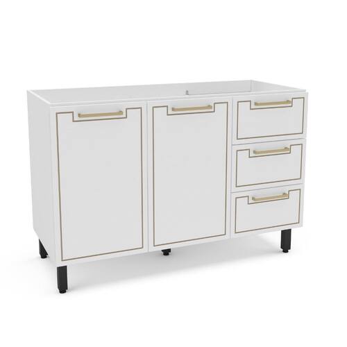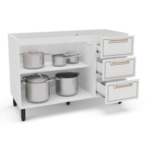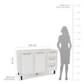 Características: Estrutura MDP/MDF 2 Portas 3 Gavetas 1 Prateleira Corrediças telescópicas Acabamento FF Pintura UV Gavetas suporta até 3kg Prateleira suporta ate 5kg distribuídos. Não acompanha tampo ou pia